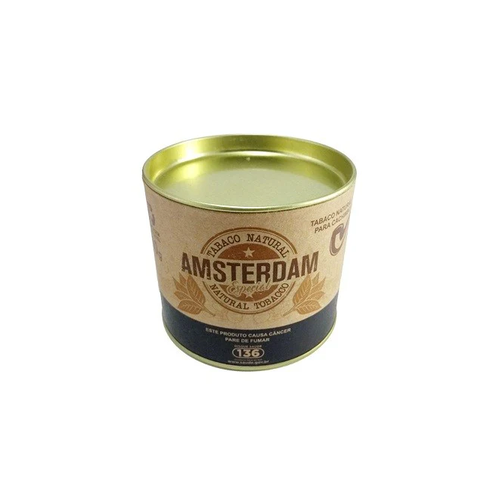 Tabaco Amsterdam Lata, para cachimbo, latinha com 50 g, bem compacta e reaproveitável.