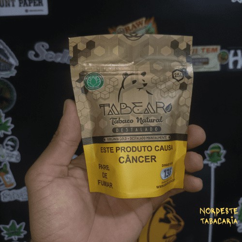 Tabaco Tabear Virginia Gold, extra leve, desfiado e destalado manualmente, livre de prrocessos químicos, 100 % natural e suave, são selecionadas as melhores folhas e cortadas na expressura ideal para enrolar, o que também contribui para um equilibrio do blend e mantém um bom aroma, bag com 25 g, com uma embalagem zíp reciclavél.
